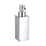 Freestanding cubic dispenser, 7 inches tall, ideal for liquid soap. Made of solid brass, smooth pump, rust-resistant, and designed with a sleek modern aesthetic. -