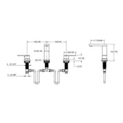 8″ Widespread faucets have a separate hot and cold handle and are used on sinks and countertops with 3 pre-drilled holes that are each 4 inches apart. The faucet body and handles are all separate pieces with volume control valves concealed under the sink.