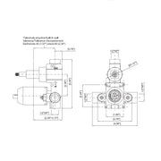 Pressostatic shower mixer with 2 outlet. With this type of mixer you can maintain a precise water temperature during the shower. It protects you from any sudden change in the pressure of the water supply. The presostatic valve mixes the hot and cold water at the preselected temperature and reacts instantaneously to any change in the pressure of the water supply by readjusting the hot and cold water mixture to maintain a constant temperature at the outlet. If there is a failure in the supply pressure of cold or hot water, the pressure valve will close automatically. It is very convenient and safe, will keep the temperature of the preselected water and allow you to relax and enjoy your shower. It is ideal for all types of bathrooms, especially the bathroom for children that prevents possible burns due to pressure drops in the cold water.It has two selectable outputs through a diverter with three positions: out 1 - closed - out 2This system is composed of rough-in valve and trim.Available in different finishes.