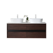 Sintra 4 Drawers Bathroom Vanity with Quartz Top and Vessel Sink - Wall Mount - 55" Wood/Dark Walnut