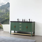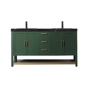 Winchester 3 Drawers And 4 Doors Bathroom Vanity with Black Quartz Sink - Floor Mount - 60" Wood/Forest Green