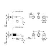 H2O Bathroom Faucet Trim - Widespread-Wall Mount - 8" Brass/Matt Black/Chrome