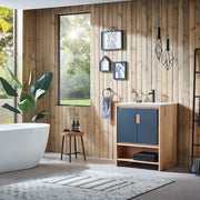 Lyon 2 Doors And 1 Open Shelf Bathroom Vanity with White Stone Sink - Floor Mount - 30" Wood/Black Of Night/Maple