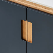 The newest entry in catalog of vanities is the elegant and warm Lyon series. Available in 60”/30”, Black of Night/Maple and Beige/Walnut, Lyon is the perfect balance of rustic and contemporary. Its pleasant organic wood paneling is paired with Valspar-coated doors and a cool, sleek countertop. This premium white/black sintered stone counter features ceramic undermount sinks. Concave design, which shapes the unique handles and door edges, brings out stereoscopic appearance to the front. Double cabinet doors open to reveal multiple shelves, in addition to an open bottom shelf for storage. Black of Night and Beige are both in 2023-2024 best color collections for designers.