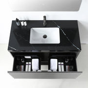Matera 1 Drawer + 1 Open Shelf Bathroom Vanity with Black Quartz Sink - Wall Mount - 36" Wood/Charcoal