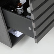 Introducing our stunning new vanity line, Matera. Available in elegant Pecan Oak and sophisticated Charcoal, Matera comes in three versatile sizes: 48", 60", and 72", ensuring a perfect fit for any bathroom space. The vanity's striking wood grain and stripped pattern add a touch of natural beauty and unique character to your bathroom decor. Choose between a pristine white or sleek black countertop to complement your style. Designed with convenience in mind, Matera features an innovative outlet drawer, seamlessly blending functionality with modern design. Elevate your bathroom aesthetic with the timeless beauty and practicality of Matera.
