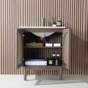Nara 2 Doors Bathroom Vanity with Quartz Countertop - Floor Mount - 30" Wood/Chestnut Oak