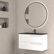 Econic 2 Drawers Left Handle Bathroom Vanity with Ceramic Single Sink - Wall Mount - 24" Mdf/Matt White