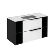 Mio 2 Drawers + 2 Open Shelf Bathroom Vanity with Ceramic Sink - Wall Mount - 48" Mdf/Matte White/Matte Black