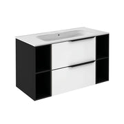 Mio 2 Drawers + 2 Open Shelf Bathroom Vanity with Ceramic Sink - Wall Mount - 40" Particle Board Laminated/Matte White/Matte Black