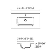 Deville 2 Drawers Bathroom Vanity with Porcelain Gloss White 1 Faucet Hole Sink - Wall Mount - 36" Mdf/Light Wood/Brushed Gold
