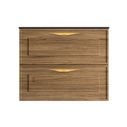 Deville 2 Drawers Bathroom Vanity with Solid Surface Matte Black without Faucet Hole - Wall Mount - 24" Mdf/Light Wood/Brushed Gold