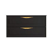 Deville 2 Drawers Bathroom Vanity with Solid Surface Matte Black without Faucet Hole - Wall Mount - 36" Mdf/Matte Black/Brushed Gold
