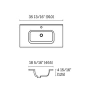 Runway 2 Drawers Bathroom Vanity with Porcelain Gloss White 1 Faucet Hole Sink - Wall Mount - 36" Mdf/Light Wood