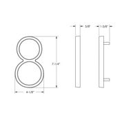 Modern "8" House Numbers - Wall Mount - 7" Zinc/Flat Black