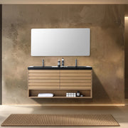 Matera 2 Drawers + 1 Open Shelf Bathroom Vanity with Black Quartz Sink - Wall Mount - 60" Wood/Pecan Oak