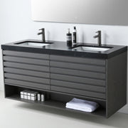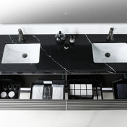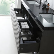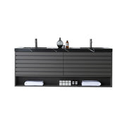 Matera 2 Drawers + 1 Open Shelf Bathroom Vanity with Black Quartz Sink - Wall Mount - 72" Wood/Charcoal