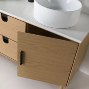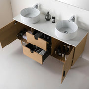Portree 2 Drawers And 2 Doors Bathroom Vanity with Quartz Top and Double Vessel Sinks - Floor Mount - 60" Wood/Whitewash Oak
