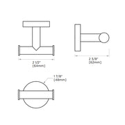 Circo Double Prong Robe Hook - Wall Mount - 3" Brass/Brushed Nickel