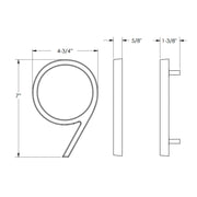 Modern "9" House Numbers - Wall Mount - 7" Zinc/Satin Brass