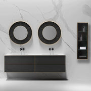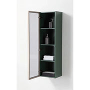 We are happy to debut our new cabinet collection: Luce. This 13" cabinet, shown here in Forest Green, is made of sturdy hardwood and features a glass door. You can easily store and find your bathing essentials using this unit. Additionally, the cabinet can be hung upside down to have the door open the other direction. A convenient soft-close keeps all your items tidy and safe. Luce cabinets perfectly match the wooden tones of our vanity lines, and are a perfect complement to your bathing space.