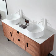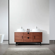Portree 2 Drawers And 2 Doors Bathroom Vanity with Quartz top and Double Vessel Sinks - Floor Mount - 60" Wood/Walnut