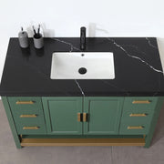 Winchester 6 Drawers And 2 Doors Bathroom Vanity with Black Quartz Sink - Floor Mount - 48" Wood/Forest Green