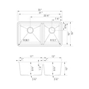 Precis 1 3/4 Double Bowl Kitchen Sink - Under Mount - 33" Granite Composite/Coal Black