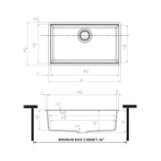 • MINIMUM BASE CABINET SIZE: 36″