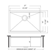 Giana Workstation Single Bowl Kitchen Sink - Under Mount - 27" Stainless Steel/Matt Gold
