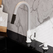 Bellacio-F Swivel Pull Down Kitchen Faucet - Single Hole - 17" Brass/Matte White/Brushed Gold