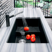 The Precis Cascade under-mount kitchen sink offers clean lines and a spacious single bowl design with an integrated second level for drying, depositing, and draining. The two sections also allow you to separate clean and dirty dishes. This kitchen sink is made of Silgranit, a patented, certified granite composite material that is engineered to take on the toughest kitchen tasks. Silgranit is heat, scratch, stain, chip, and impact-resistant, making it stronger and more durable than other sink materials. Beautiful and highly functional with its non-porous, hygienic surface, it pushes away liquids and residue resulting in low maintenance, easy to clean, long-lasting material. The functionality of the Precis Cascade is endless and easily conquers the demands of everyday life.