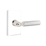 Select L-Square Modern Rectangular Rosette With Straight Knurled Lever Single Cylinder Right Door Keyed Leverset - Door Mount - 6" Brass/Polished Chrome