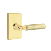 Select L-Square Modern Rectangular Rosette With Straight Knurled Lever Single Cylinder Right Door Keyed Leverset - Door Mount - 6" Brass/Unlacquered Brass