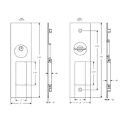 Narrow Modern Rectangular Mortise Privacy Pocket Door Lockset - Door Mount - 8" Brass/Oil Rubbed Bronze