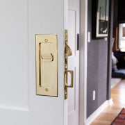 Mortise Lock for pocket door. Made in full bras this pocket door lock is ideal for install in pocket door giving it a modern look while functional.Available in different finishes.Also available in four functions: Passage, Privacy, Keyed and Dummy.