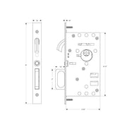 Modern Rectangular Privacy Mortise Pocket Door Lockset - Door Mount - 8" Brass/Polished Chrome