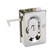 Deluxe pocket door privacy lock with pull. This deluxe pocket door privacy lock and pull has a wide, easy grip design and is for left or right-handed doors.Installation is quick and easy, plus all hardware and instructions are included. The lock set is non-handed, allowing it to be used on both left and right-handed pocket doors.This lock adjusts to install on both 1-3/8” and 1-3/4” thick doors and is a mortise installation.This pocket door pull and lock is constructed from solid brass, so it’s durable, strong and sure to last the test of time. This mortise lock is reversible for either a right or left handed door.Available in different finishes.Available in Passage or Privacy function