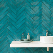 Flow Peacock Green Rectangular Wall Tile - Wall Mount - 3 x 12" Ceramic/Green