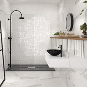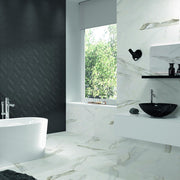 Stylish marbled tile with a brushed finish, 60x60 cm in size, super white in color and streaked with veins, highly ornate.CALACATTA, a range of white marble products with grayish veins that will make any space a stylish and appealing setting. Discover our new SUPERWHITE floor tile models that come in a polished or brushed finish, with a whiter appearance that is suitable for any room.Go ahead and combine it with any Calacatta decoration!indoorswalls and floorsshower and steam rooms