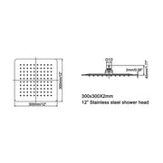 Luk 2 Square Nozzle Shower Head - Wall Or Ceiling Mount - 12" Stainless Steel/Polished Stainless Steel