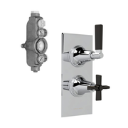 Exposed 2 Way Divertor Thermostatic Cross-Lever Shower Mixer - Wall Mount - 9" Brass/Polished Chrome