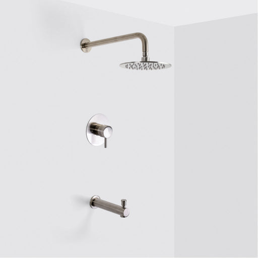 View full detailsDevon 2-3 Way Shower Set With Tub Spout - Wall Mount - 8" Brass/Brushed Nickel