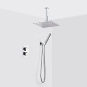 Pressure balanced 2-3 Way shower system of our family Devon. With this shower set you have everything you need to install your shower. It is a two-way system with outlet for shower head and outlet for hand shower. This system is available in different finishes. Composed of two-way pressure balanced mixer, connector with holder for hand shower, hand shower, hose, shower arm for ceiling installation and shower head of slim design.