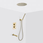 Metro 3 Way Thermostatic Complete Shower Set - Ceiling Mount - 12" Brass/Satin Brass