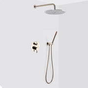 Pressure balanced 2-Way shower system of our family Metro. With this shower set you have everything you need to install your shower. It is a two-way system with outlet for shower head and outlet for hand shower. This system is available in different finishes. Composed of two-way pressure balanced mixer, connector with holder for hand shower, hand shower, hose, shower arm for wall installation and shower head of slim design.