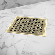 Lagos Mira Center Square Shower Drain - Floor Mount - 4" Stainless Steel/Gold