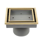 Lagos Veil (Tile-In) Center Square Shower Drain - Floor Mount - 4" Stainless Steel/Gold