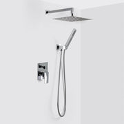 Pressure balanced 2-Way shower system of our family Devon. With this shower set you have everything you need to install your shower. It is a two-way system with outlet for shower head and outlet for hand shower. This system is available in different finishes. Composed of two-way pressure balanced mixer, connector with holder for hand shower, hand shower, hose, shower arm for wall installation and shower head of slim design.