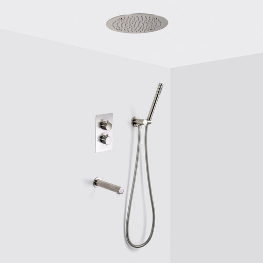 View full detailsMetro 2 Way Thermostatic Complete Shower Set - Ceiling Mount - 16" Brass/Brushed Nickel